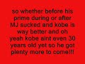 | kurdishballer741 ::: Favorites kobe is my fav player of all time but u cant diss mj he was a great basketball player so is kobe...kobe is kobe....mj is mj..i think there both the greatest of all time cant dis respect any of them with these kind fo videos. 07-10-16 16:58:29 __________________________________________________ | |
